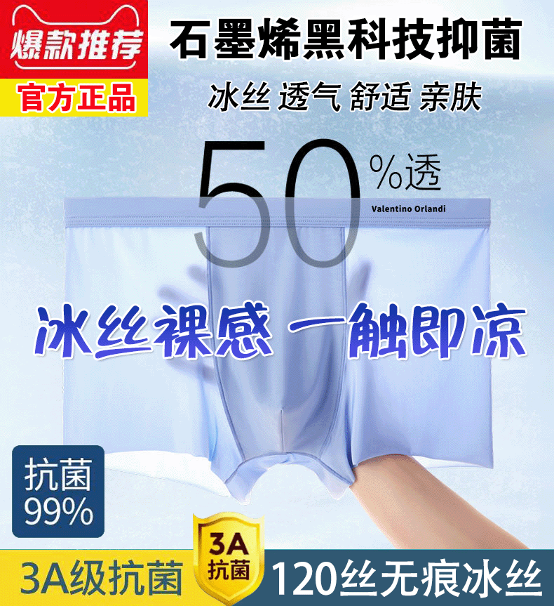 4分钟前【男士冰丝内裤】石墨烯抑菌 冰爽透气(1盒5条 仅129元)