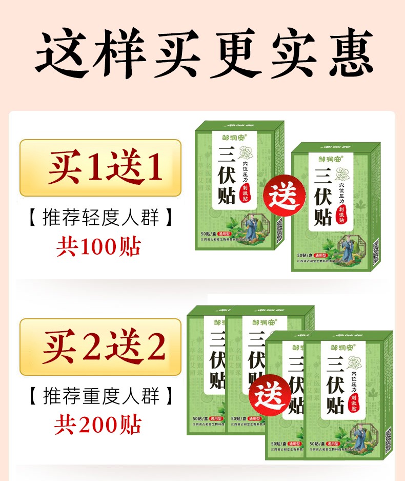 3分钟前【冬病夏治三伏贴】排湿散寒 调理脾胃 老少皆宜 - 【推荐重度人群】排湿散寒 调理脾胃 老少皆宜 冬病夏治三伏贴 (买2送2 发4盒200贴) 159元