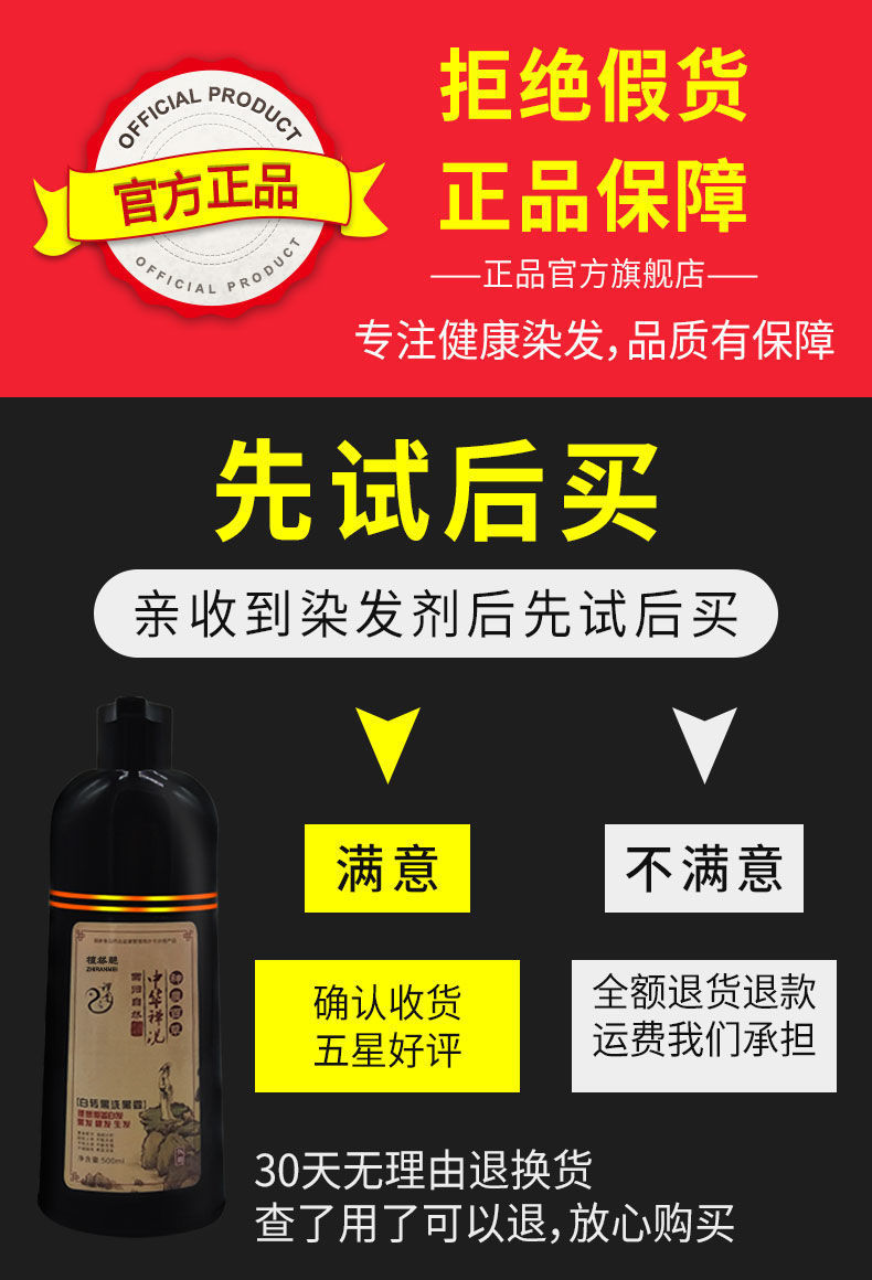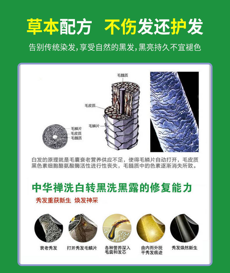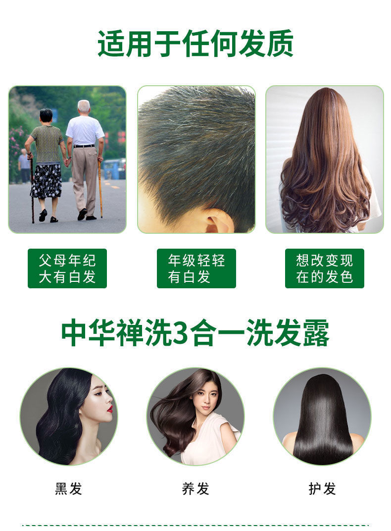 既要父母年轻,更要父母健康!中华禅洗白转黑洗发露,洗发就等于黑发。无需调配,洗发水式黑发,即洗发又黑发,只需一洗一冲,不沾头皮不伤发,洗完水是清的,毛巾是白的,头发是黑的!货到验货,满意付款不满意包退换!有信心就是这么任性!!
