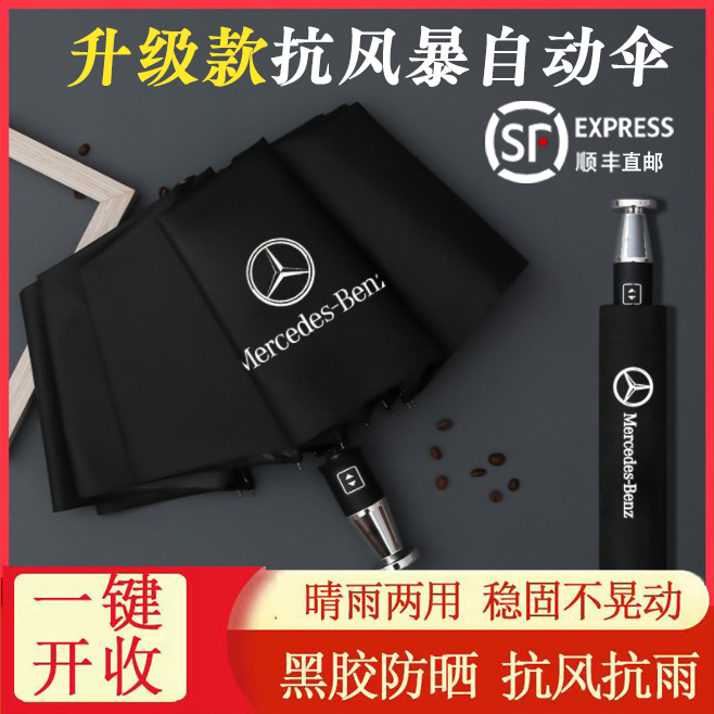 5分钟前升级款抗风暴奔驰自动伞 晴雨两用一键开收 - 【升级款抗风暴黑胶伞】晴雨两用 一键开收 加固伞骨 (长把伞1把装)119元