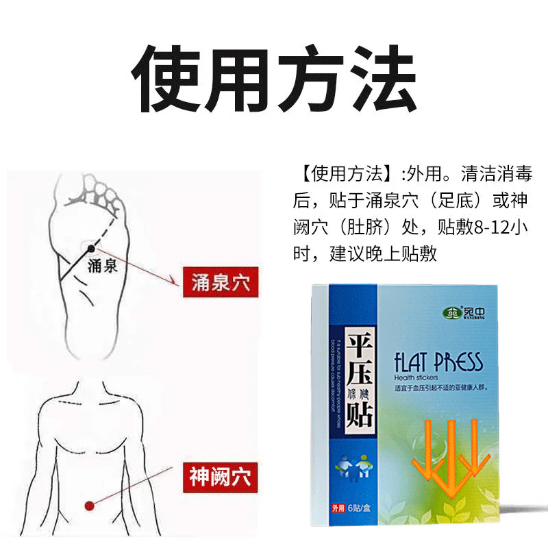 平压贴传承千古舒压中药配方,使用方法也是延续了中医传统的穴疗,用穴位“吃”药,渗透率高,吸收效果好,关元穴、涌泉穴这两个穴位,直接和肝肾相连,药效直达。坚持使用平压贴的朋友,血压降了,血管通了,身体比以前更健康了。