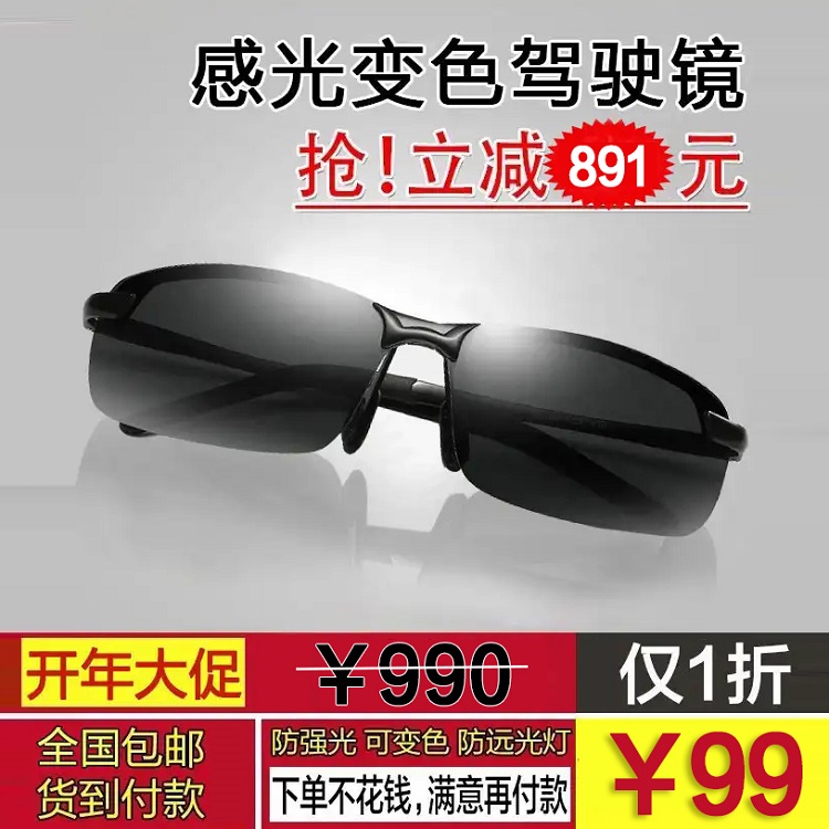 1分钟前感光变色驾驶偏光太阳镜 防强光远光灯 - 爆款变色司机偏光太阳镜{实惠装两副} 159元
