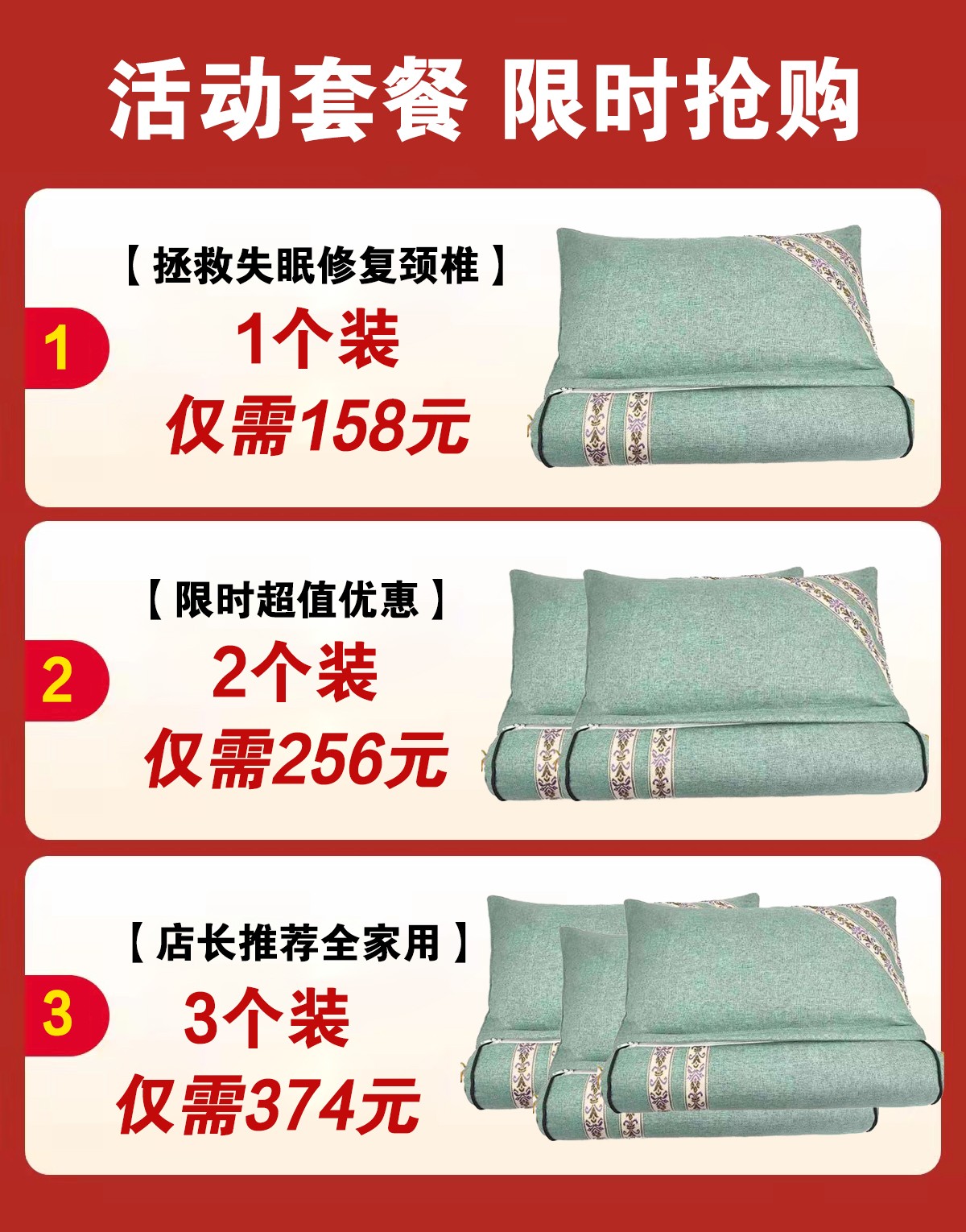 3分钟前【拯救失眠枕】 修复颈椎 3个 仅374元(需要颜色请备注)