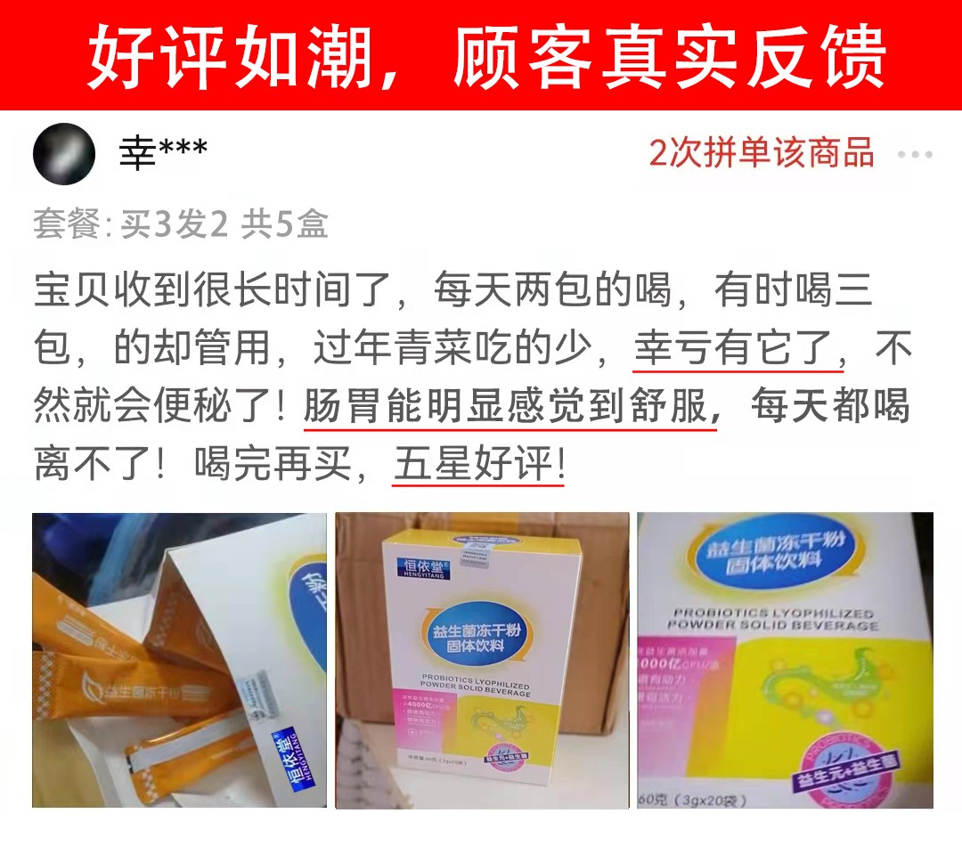 3分钟前【益生菌冻干粉】调理肠道菌群 守护全家肠道健康! - 【益生菌冻干粉】买3送2 共5盒(店长推荐) 159元(70%顾客选择此套餐)