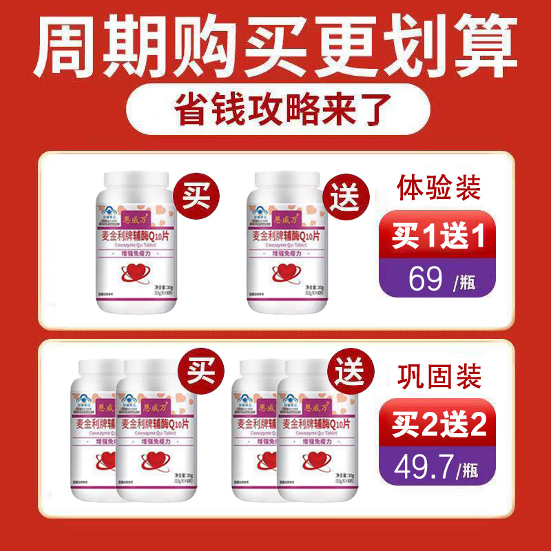 3分钟前【心脏守护专家】辅酶Q10片 增强免疫力激发心动力! - 【体验装】增强免疫保护心脏 麦金利辅酶Q10片(买1送1发2瓶) 138元