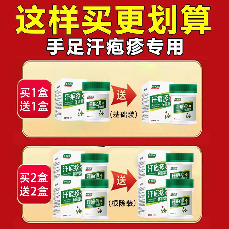 半小时前 汗疱疹保健膏 瘙痒水泡脱皮轻松解决 拒反复 - 【根除疗程装】瘙痒水泡脱皮轻松解决 汗疱疹保健膏(买2送2 共4盒)159元