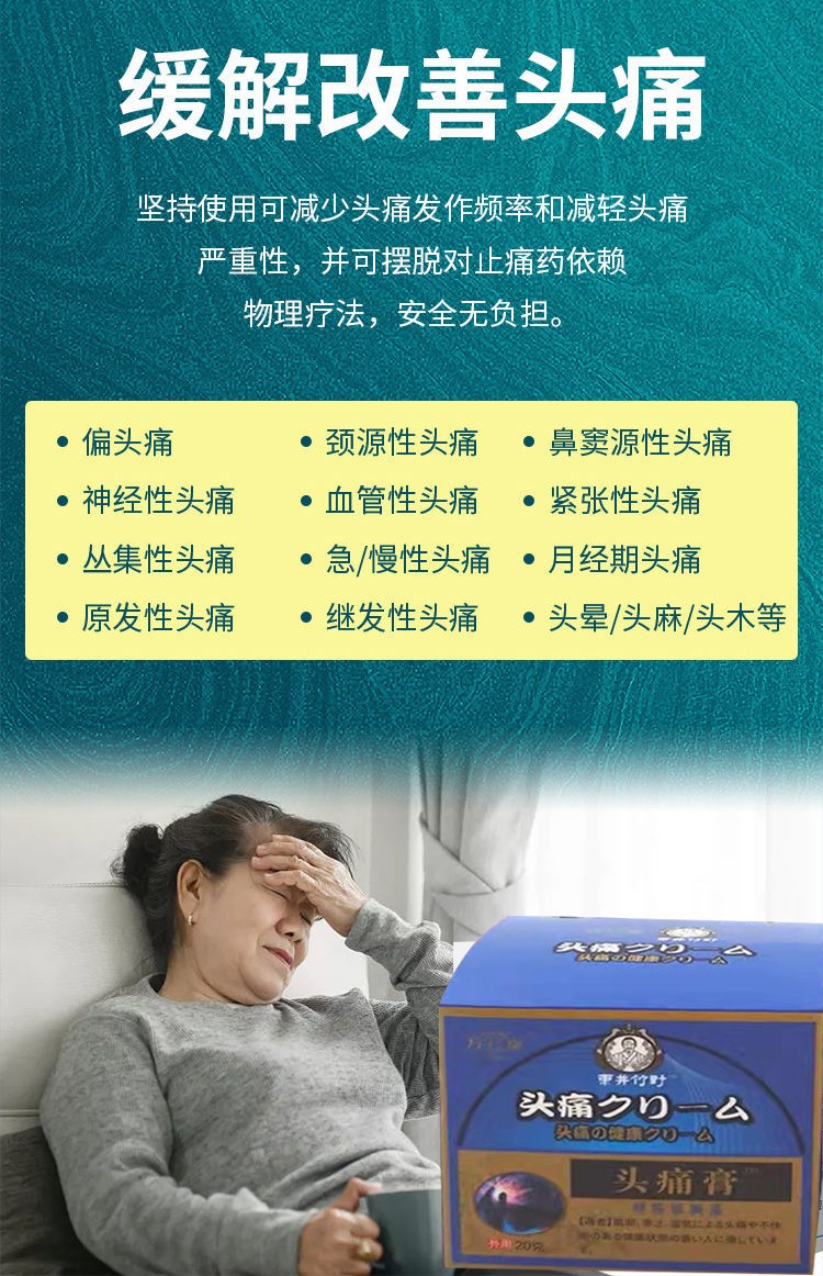 2分钟前【头痛膏】头痛偏头痛专用,一抹止痛可断根 - 【头痛膏】买1送1 共2瓶(体验装 透皮给药/舒缓头痛)99元