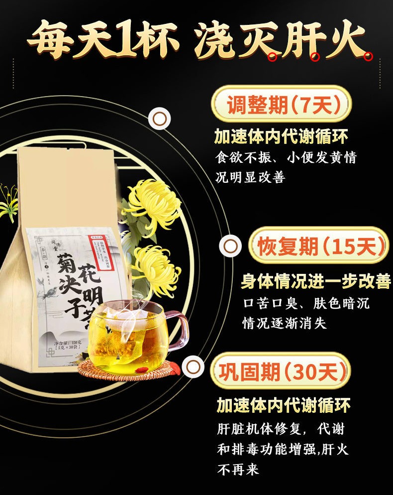 1分钟前【菊花决明子茶】清肝明目远离肝火。 - 【改善代谢装】(菊花决明子茶)每天一杯远离肝火 买5发10 10盒装159元