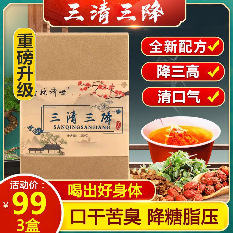 半小时前 【三清三降茶】 每天喝一喝,清口气、降三高、降血脂。 - 【体验装】【三清三降茶】【买1送2 发3盒】(共90小包一疗程) 99元